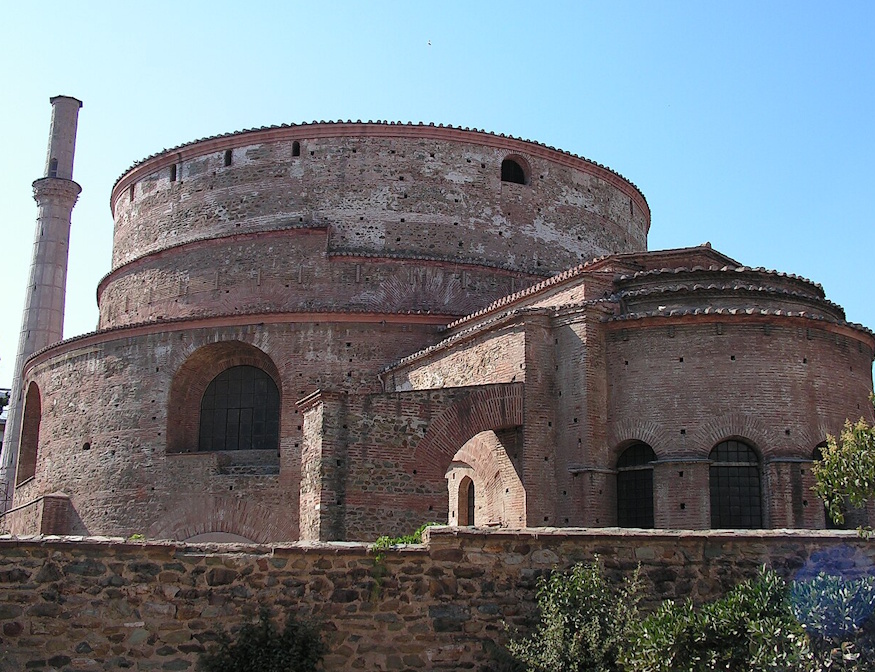Links: Die Rotunde: ursprünglich Mausoleum des Galerius, wurde sie in eine christliche Kirche der Unbefleckten Empfängnis umgewandelt und nach 1912 dem Heiligen Georg geweiht.
