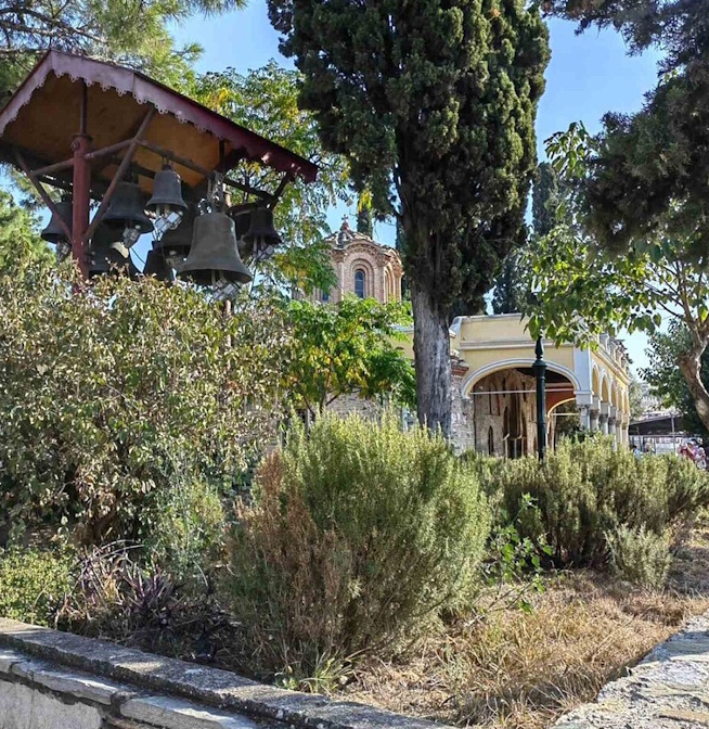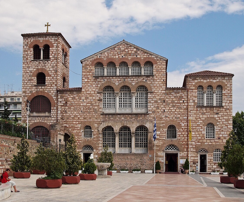 Links: Die Kirche des Heiligen Dimitrius, Schutzpatron von Thessaloniki.
