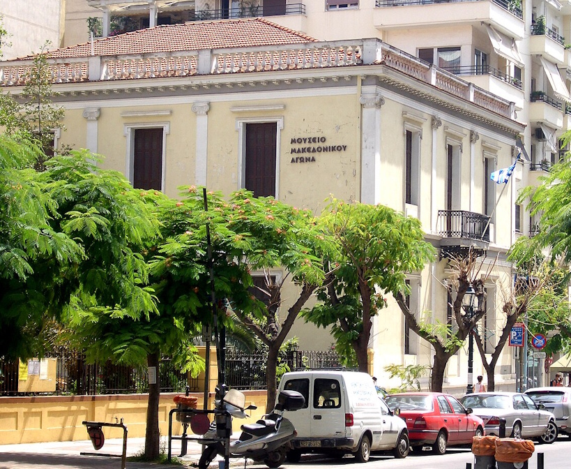 Links:Das Allatini-Anwesen, im Besitz der jüdischen Industriellen von Thessaloniki, beherbergte Sultan Abdul Hamid II. im Jahr 1909 während seines Exils in Thessaloniki, das er im Anschluss an die Jungtürkische Bewegung in Konstantinopel aufnahm.