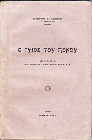 Στις 29 Ιουνίου 1951 το ΘΕΑΤΡΟ ΛΟΓΓΟΥ παρουσίασε το έργο"Ο γυιός του πόνου""Ο γυιός του πόνου" είναι δράμα σε τρεις πράξεις και εικόνα μία του ΠΕΤΡΟΥ Ι. ΑΞΙΩΤΗ (1879-196?) και εκδόθηκε περίπου το 1930-1935. Ο Πέτρος Ι. Αξιώτης ήταν Έλληνας συγγραφέας και ιστορικός, γνωστός κυρίως για τα βιβλία του που αφορούν την ιστορία της Θράκης, την Αδριανούπολη και την Θάσο, με σημαντικό έργο όπως «Η Θράκη-Ανατολική Ρωμυλία» και «Η Θάσος», δημοσιευμένα γύρω στα μέσα του 20ου αιώνα.