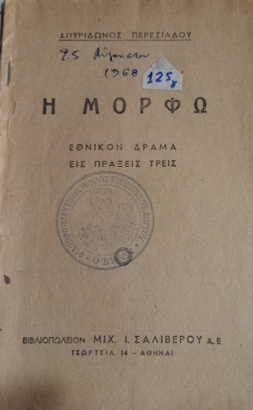 Le 25 août 1968, le THÉÂTRE LOGGO présentait la pièce« MORFO »« Morfo » est une pièce de théâtre écrite par SPYRIDON PERESIADIS.